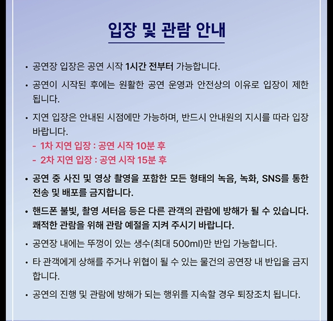 ✅ 공연 시작 후 입장 제한 규정 적용