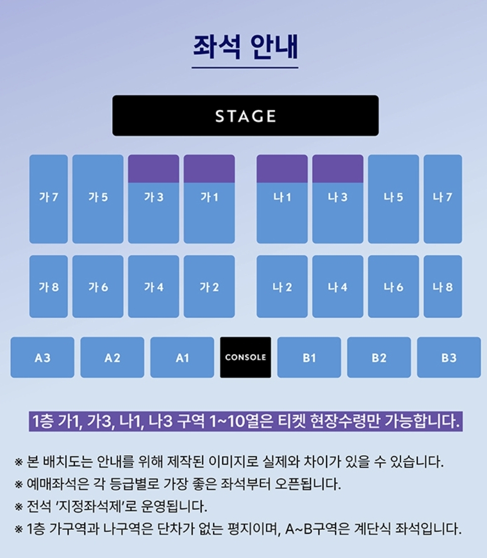 - 공연장 입장 시작: 공연 1시간 전부터