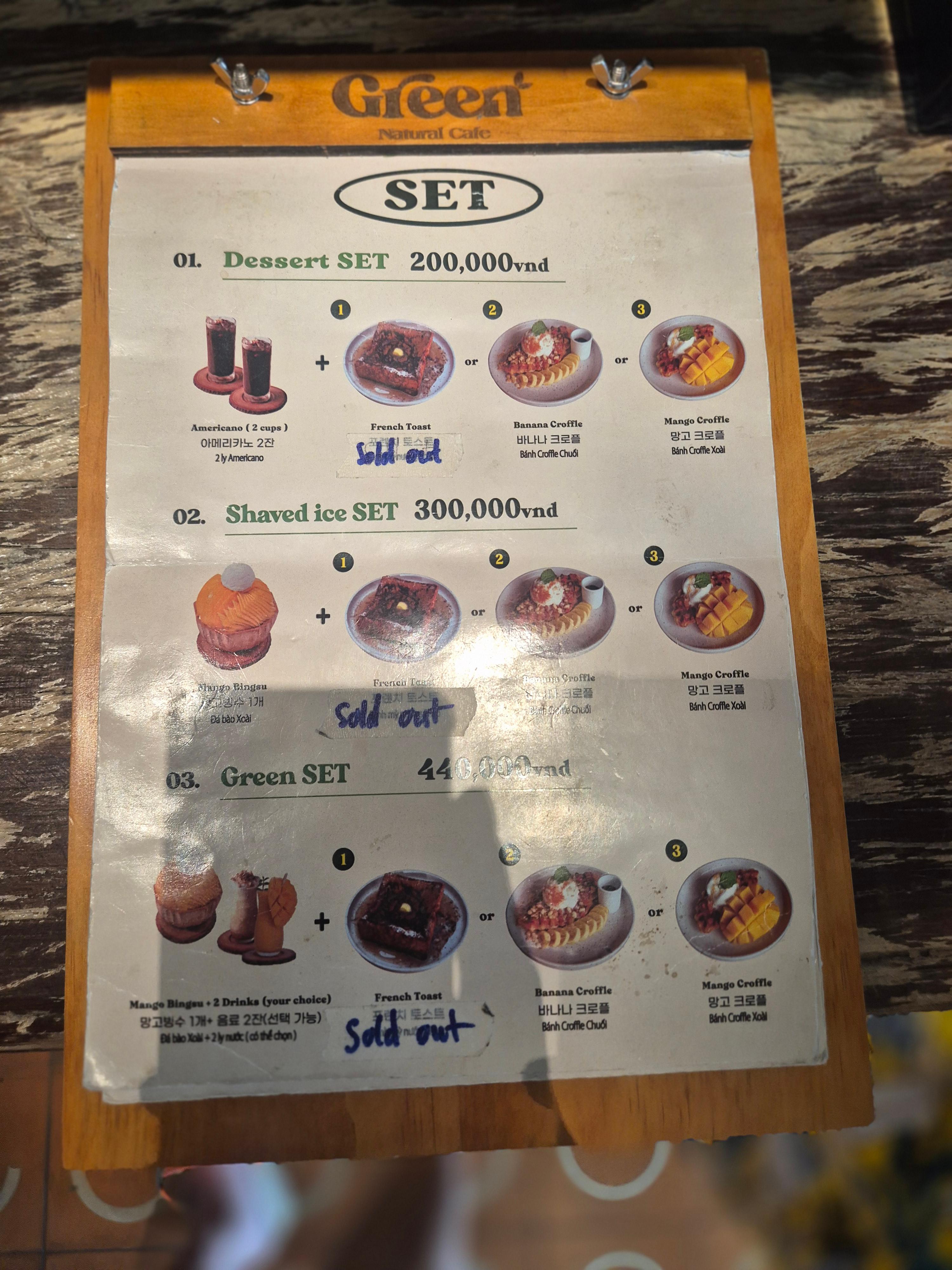 Green에서 주문한 메뉴는 **Shaved Ice Set(300,000VND)**였어요.