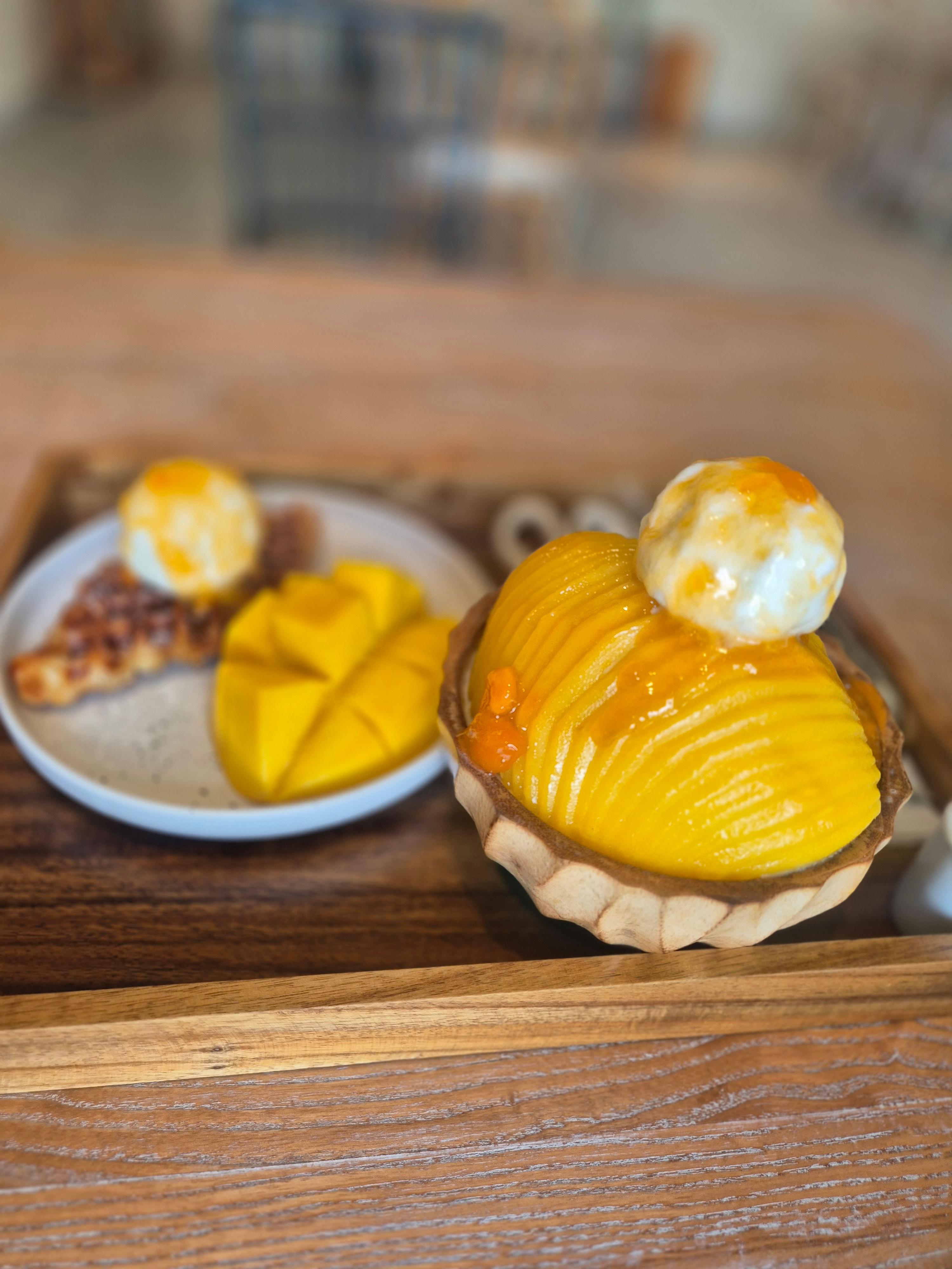 그 위에 아이스크림이 살짝 녹으면서 스며들고, 옆에 큼지막하게 썰어준 생망고와 같이 먹으면…