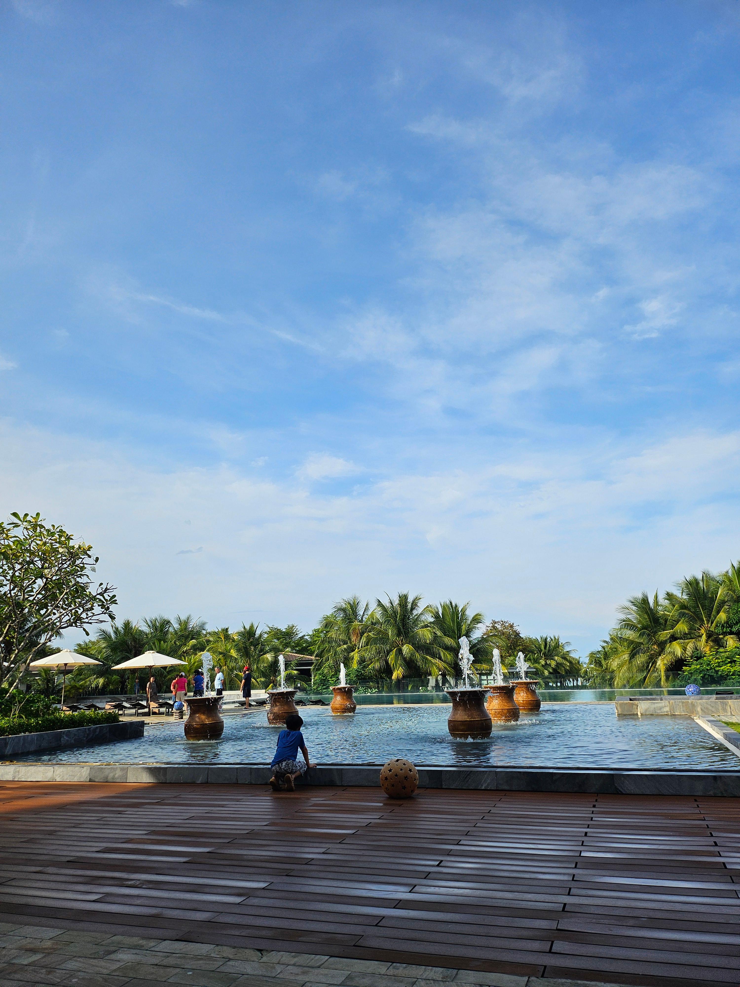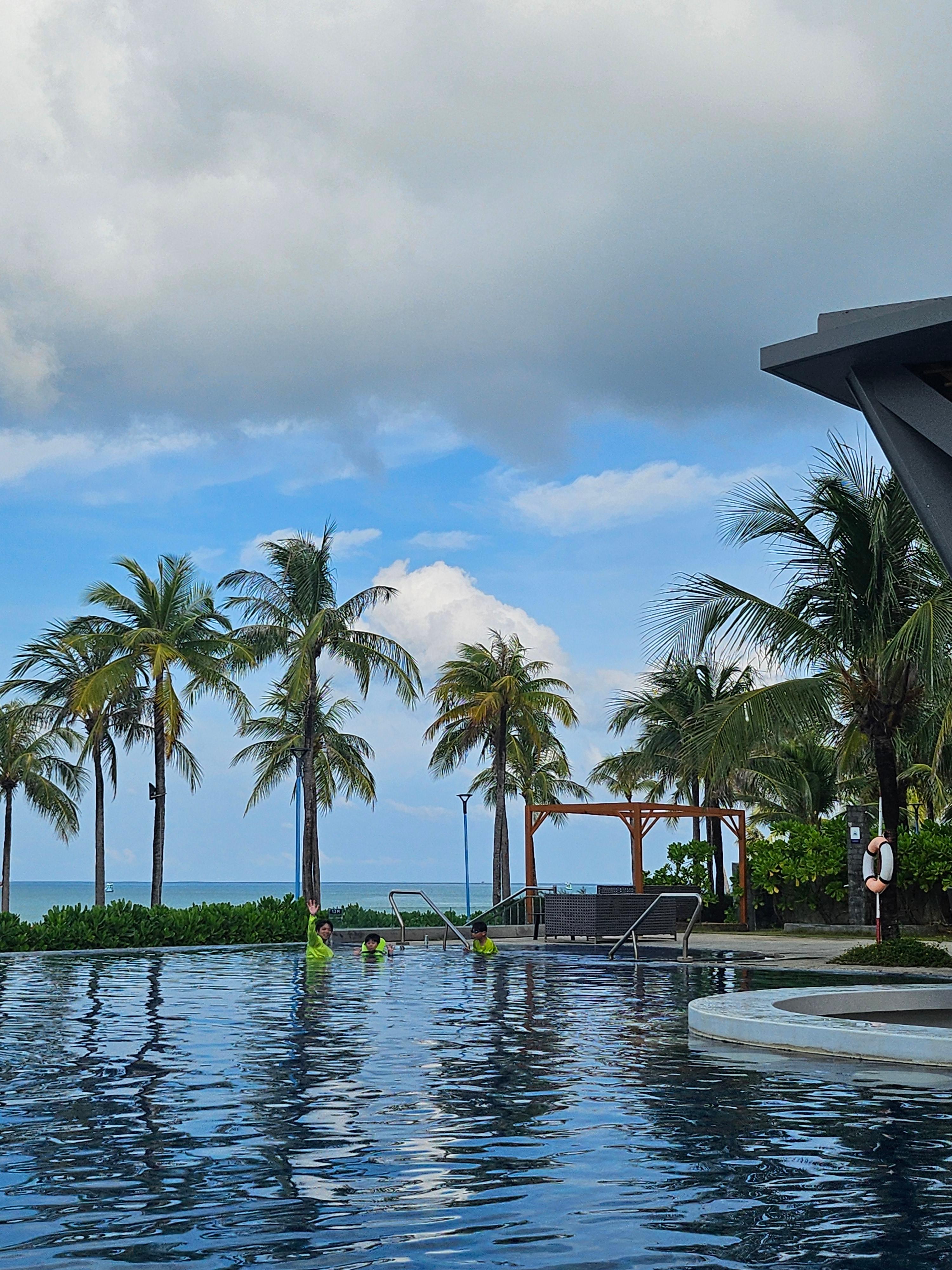 아이들은 바로 앞 수영장에서 놀고, 와이프와 저는 테라스에 앉아서 커피 한 잔 하며 아이들 노는 걸 바라보는 시간.