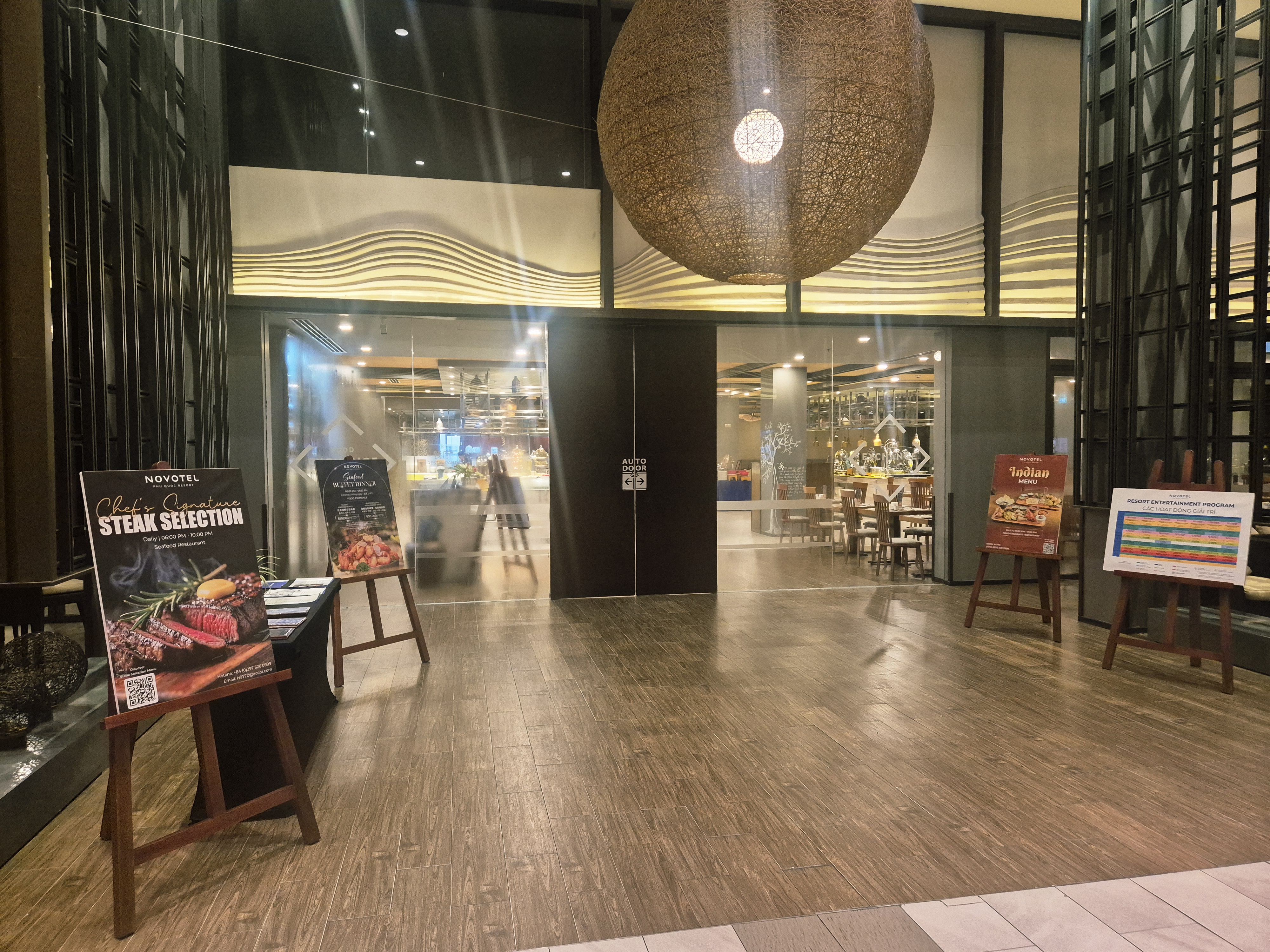 노보텔 조식 레스토랑은 1층 프런트 데스크 바로 맞은편에 위치해 있어요.