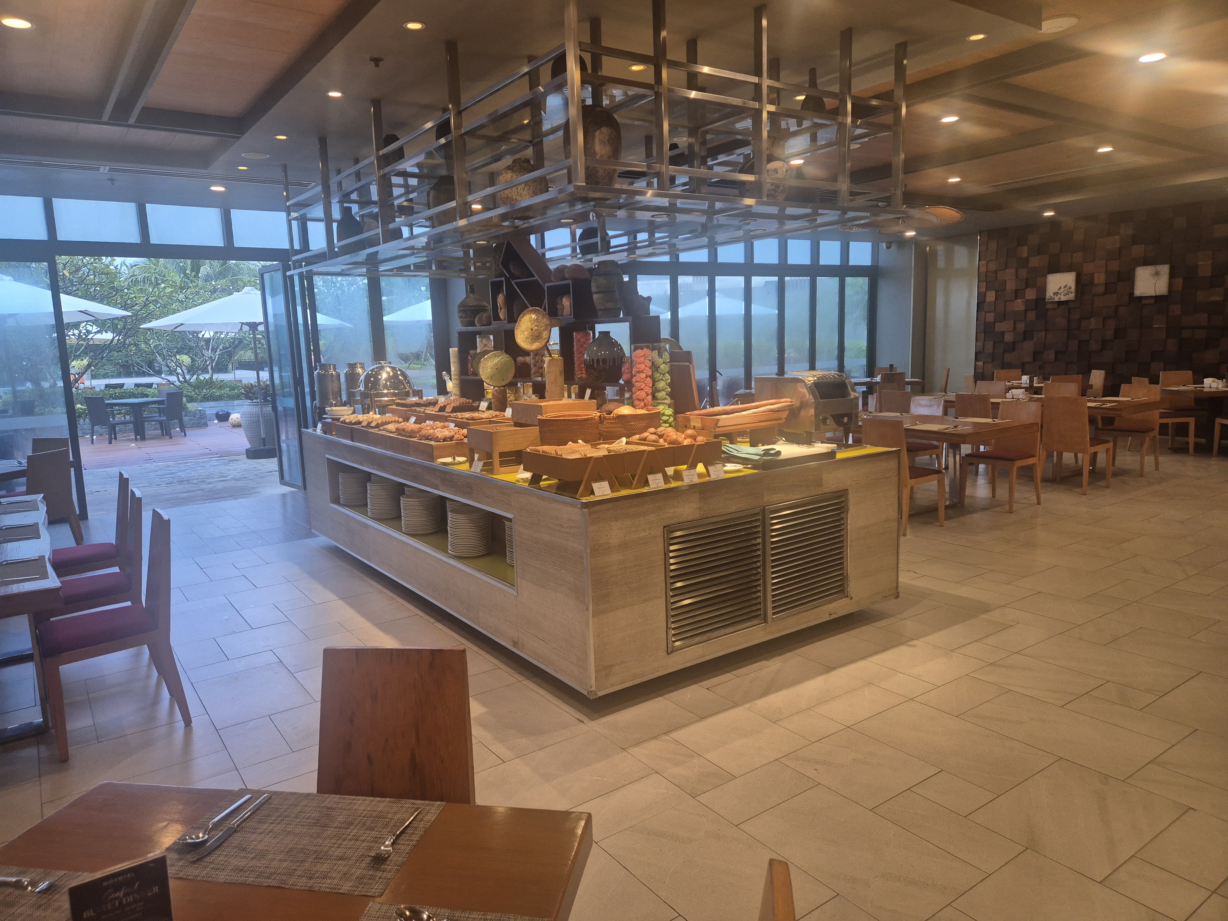 노보텔 조식의 진짜 핵심 포인트는 바로 이거예요. 야외 테라스에서 조식 가능 👍