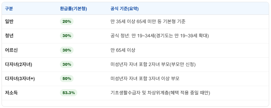 경기도 K-패스 환급은 이용 횟수 + 대상 + 카드 유형에 따라 달라집니다.
